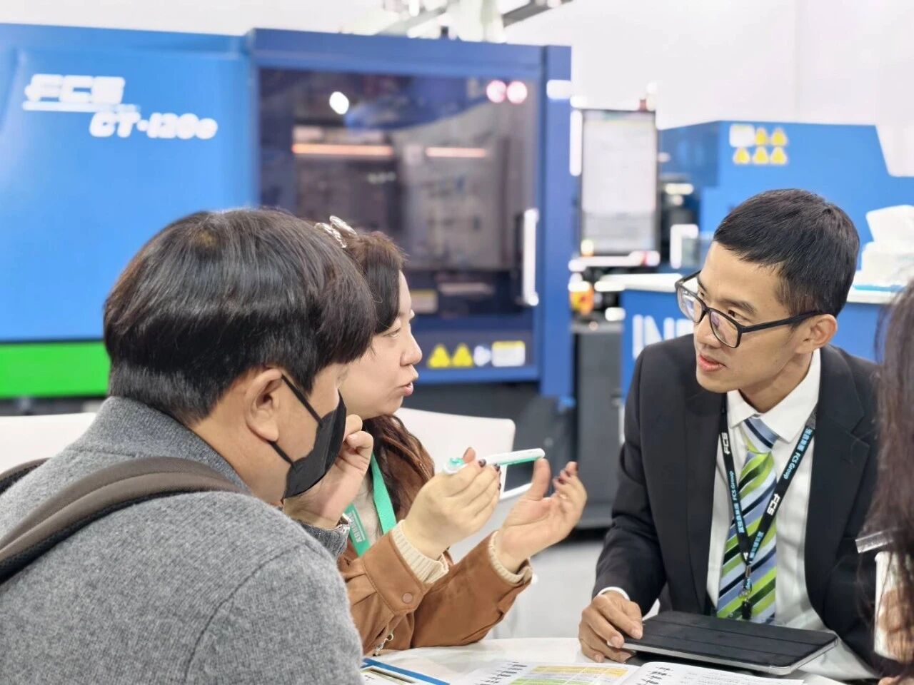富强鑫集团以「智能制造 × 永续实践」为展出主轴,于 Hall 12 / B80 展出多款全电式成型设备,结合再生材料、微发泡技术与智能工厂系统,展现涵盖单色与双色、精密与节能、多材料应用的绿色成型解决方案,全方位回应全球市场对高效、低碳与智能化的需求。