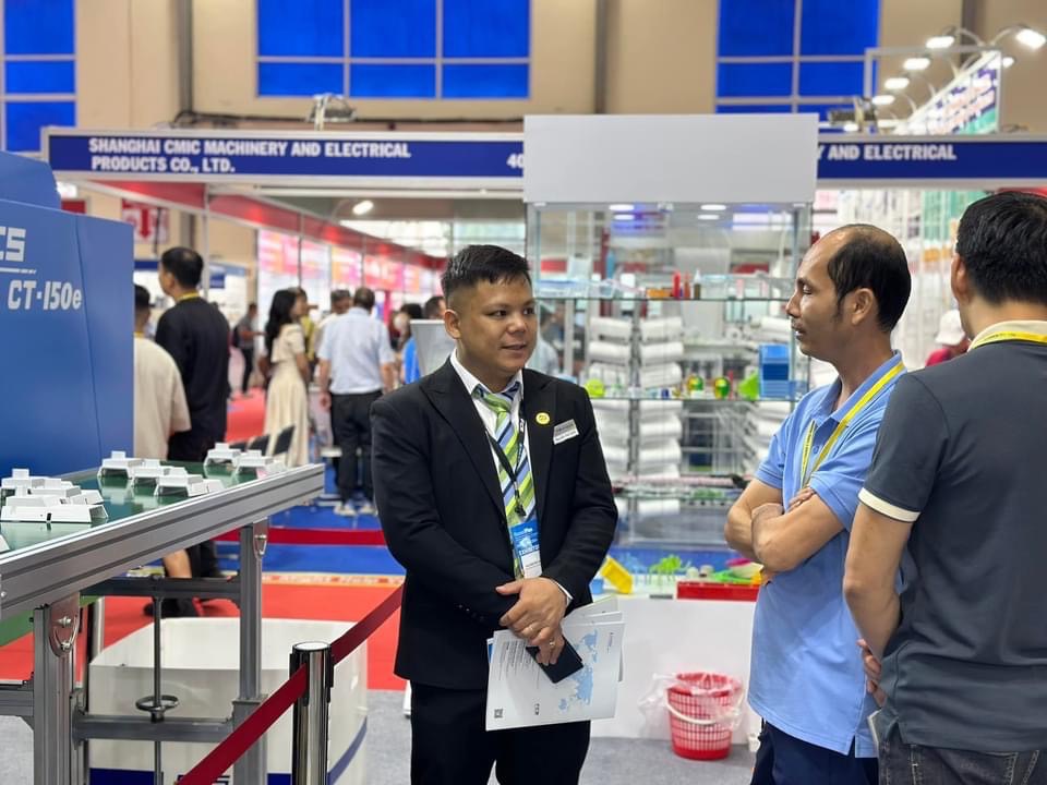 全电机采用高性能伺服系统并提供精准稳定的控制能力,适用于食品包装、光学、医疗,及电子产业,其精致外型除了吸引现场观众围观,并提供FCS团队与越南客户面对面交流机会。